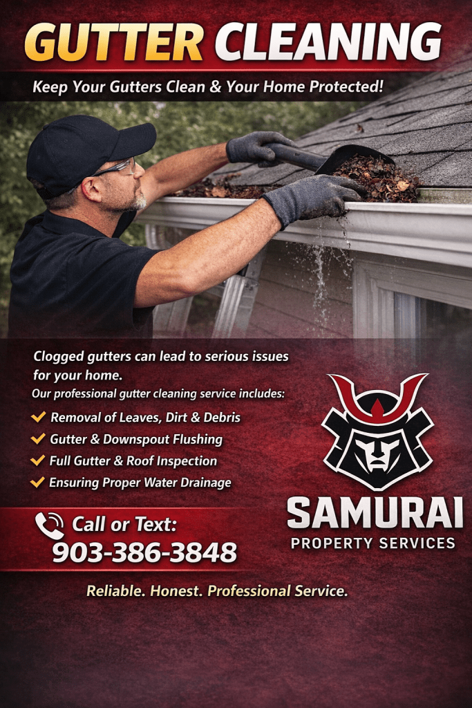 Clogged gutters can lead to water damage, foundation problems, roof leaks, and expensive repairs. At Samurai Property Services, we provide reliable and thorough gutter cleaning to keep your home protected year-round.
